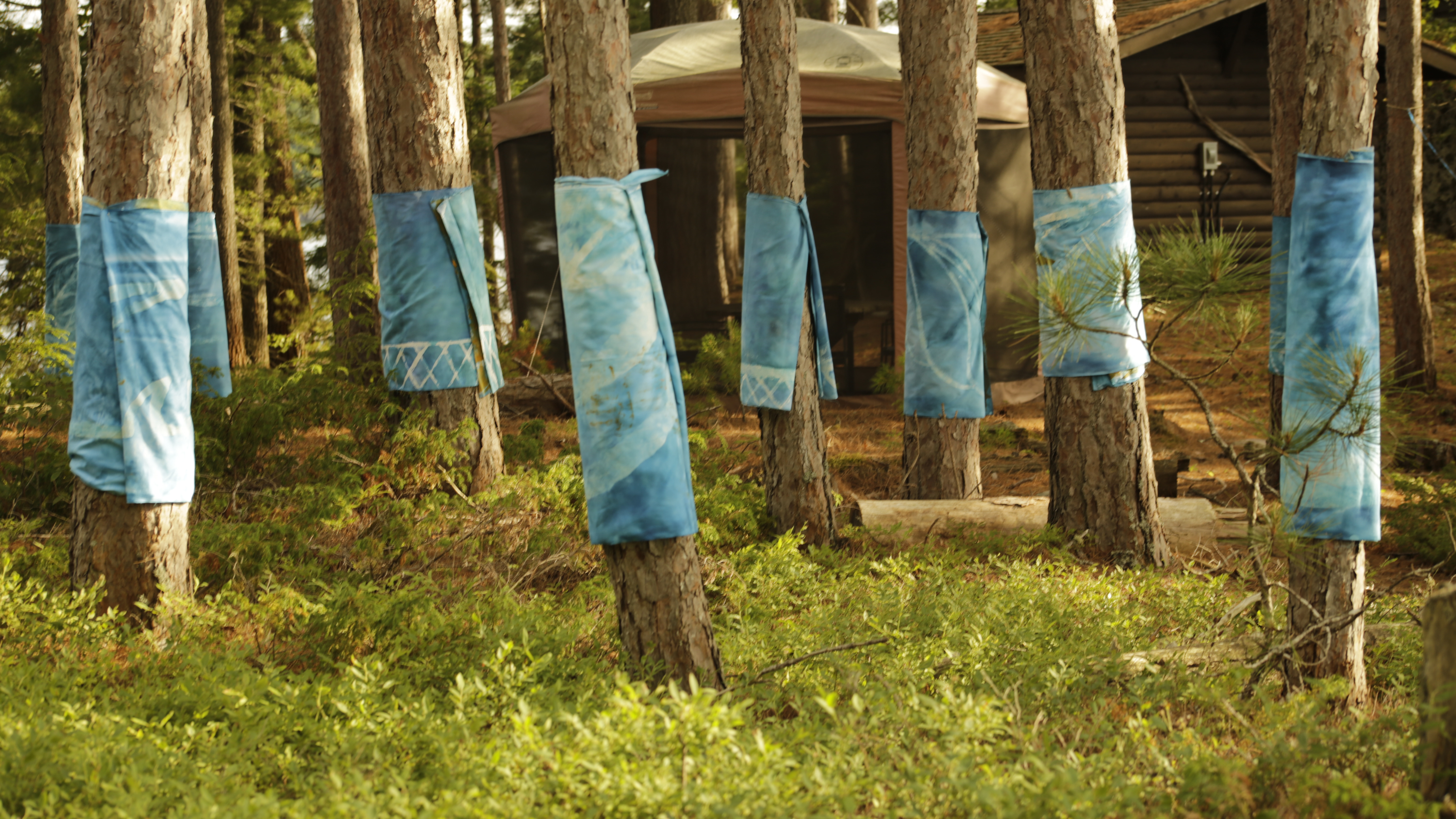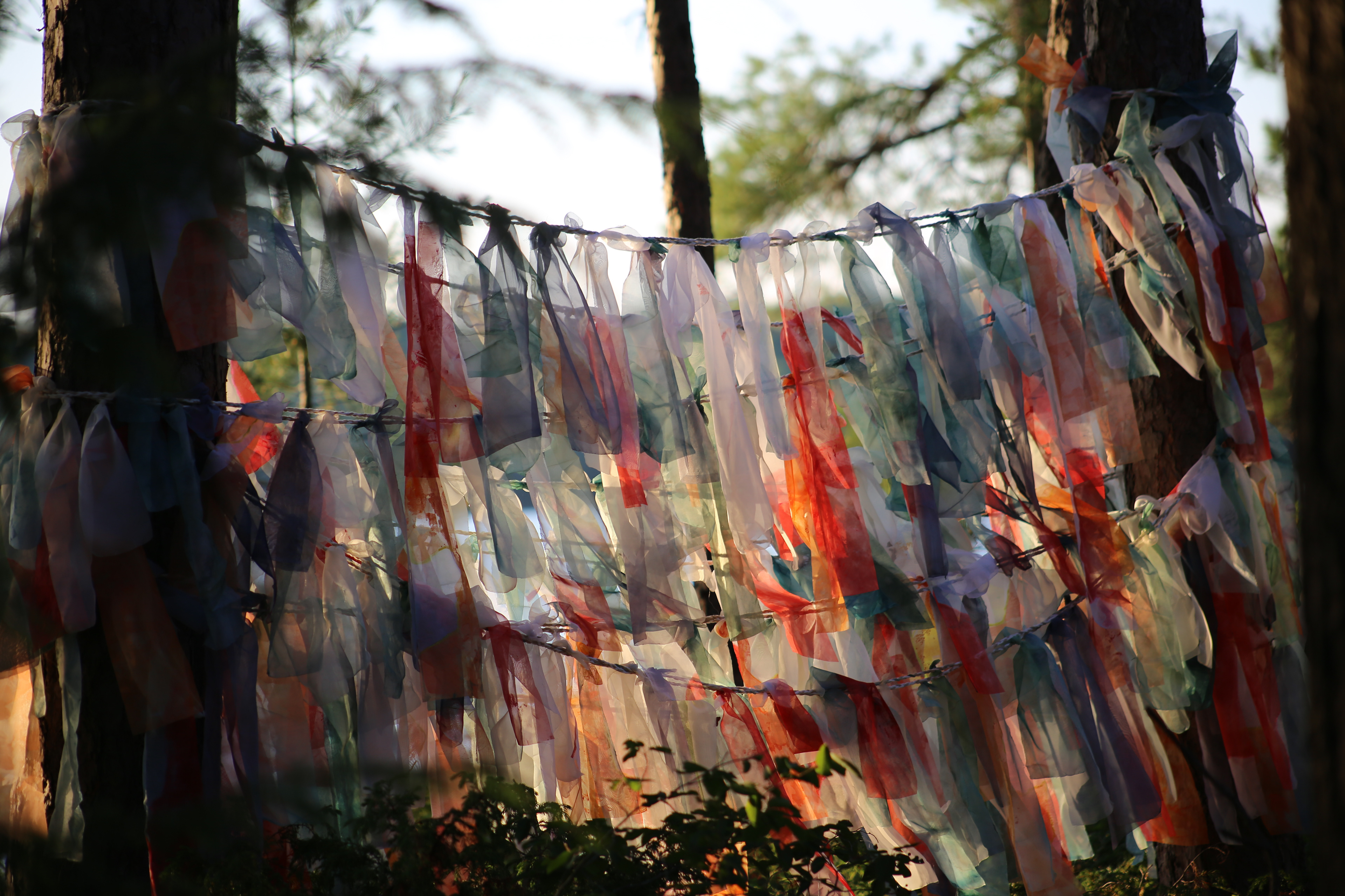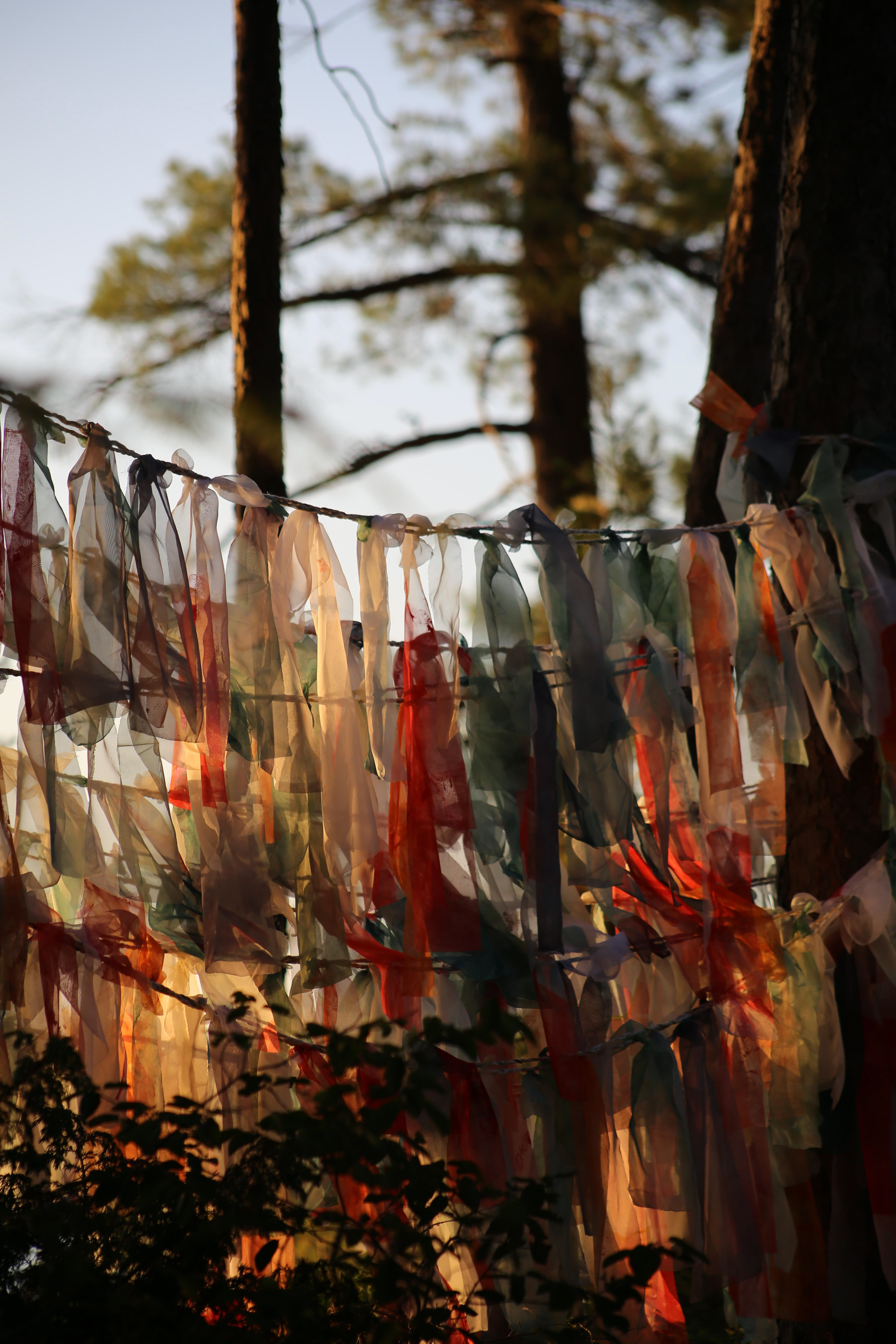 I tied individual pieces of fabric to a rope, each representing a single wish and a drop of rain.